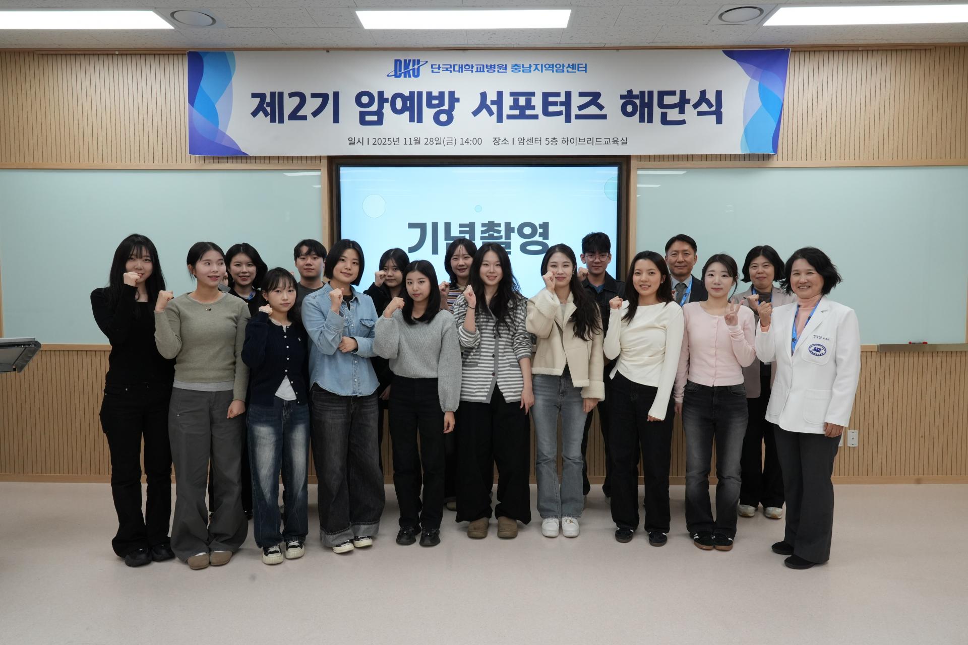 충남지역암센터는 2025년 11월 28일(금) 오후 2시부터 4시까지 암센터 5층 하이브리드 교육실에서 ‘제2기 암예방 서포터즈 해단식’을 성황리에 개최했다.